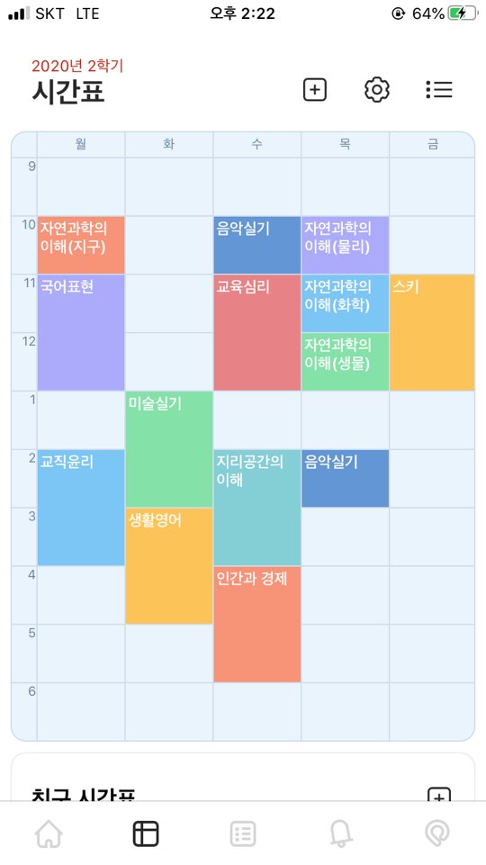 1학기 수신 망한줄 알았는데 완전 성공한 시간표였다는 걸 이번에 알게되었다