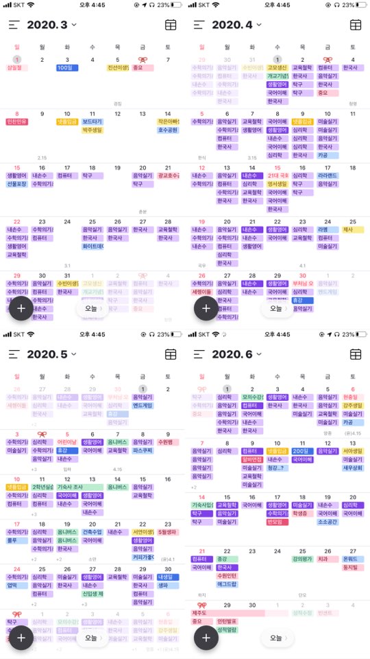 1학기, 4달동안의 달력